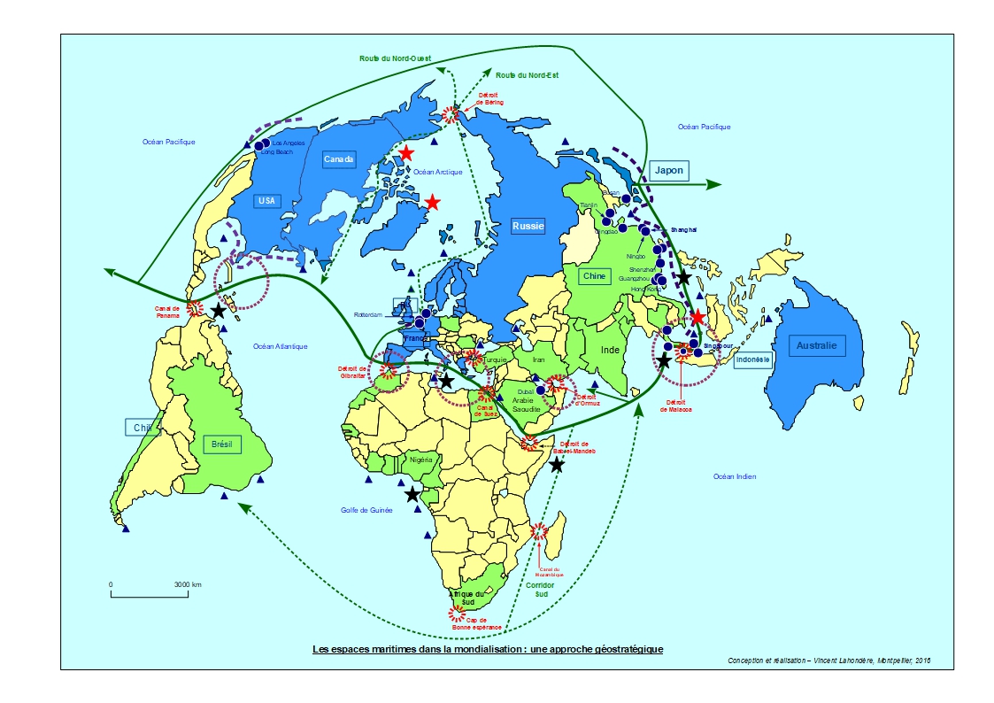 Enfin nous avons consacré une dernière partie aux convoitises et tensions car elles jouent un rôle essentiel dans toute approche géostratégique des espaces maritimes dans la mondialisation.